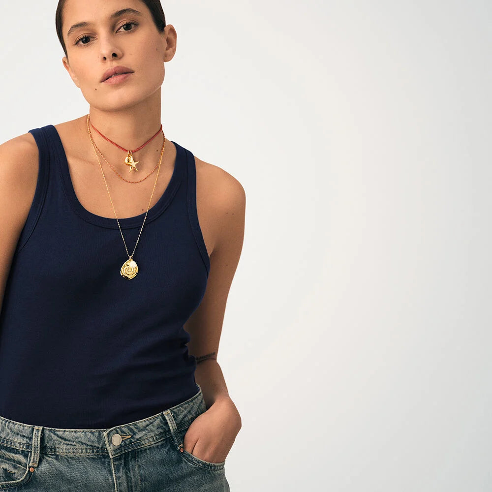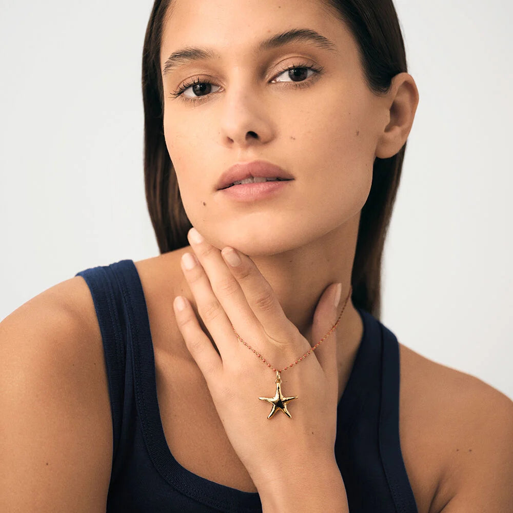 Colgante acabado en oro con forma de estrella de mar. Puedes combinarlo con cualquier base y resto de colgantes y personalizar tus joyas sin límite.