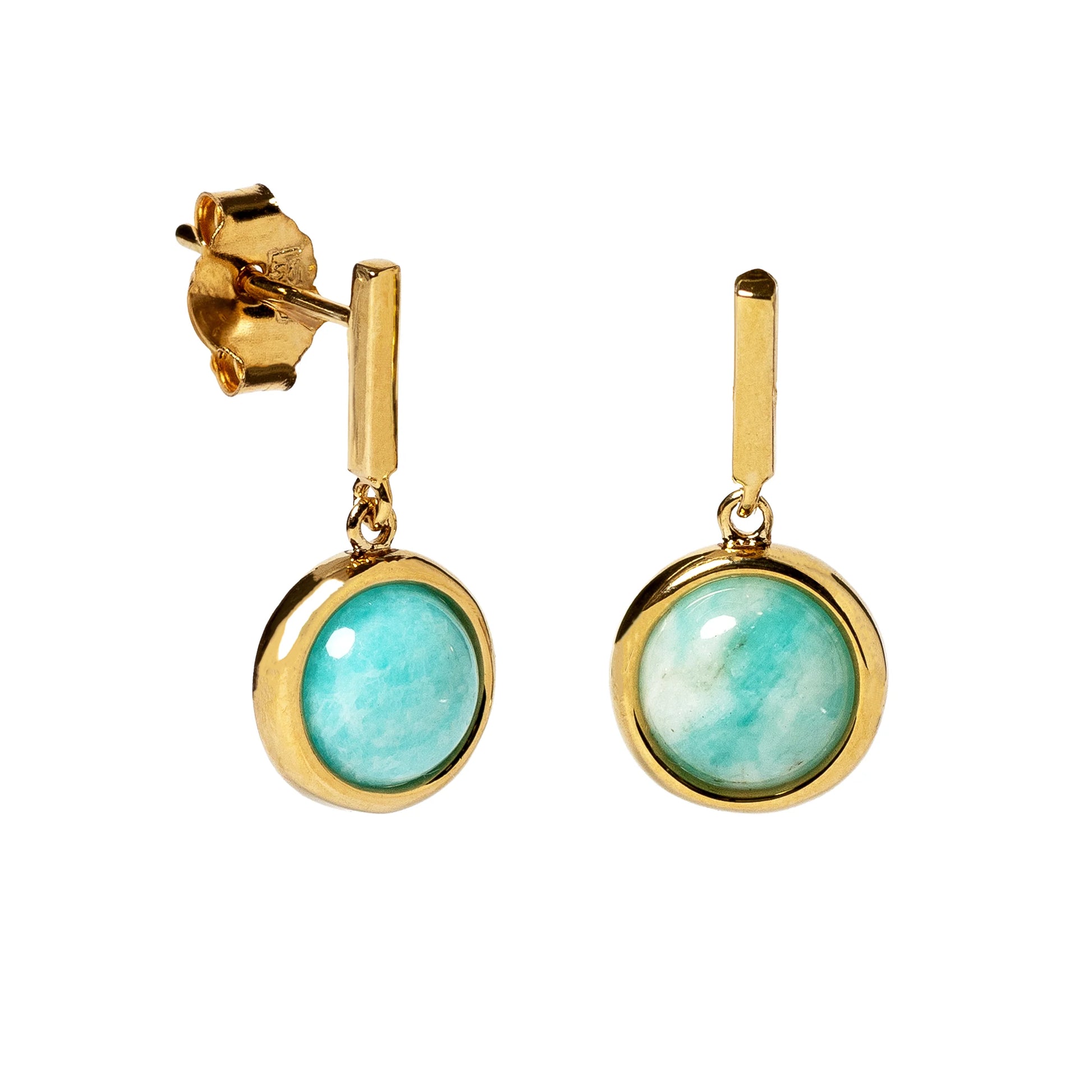 Los pendientes AMAZONITA GOLDEN están chapados con 3 micras de oro de 18 quilates para proporcionar durabilidad y lujo. Están adornados con piedra amazonita natural para darle un acabado moderno y con estilo. Debido a su calidad, estos pendientes pueden durar mucho tiempo con el uso adecuado.