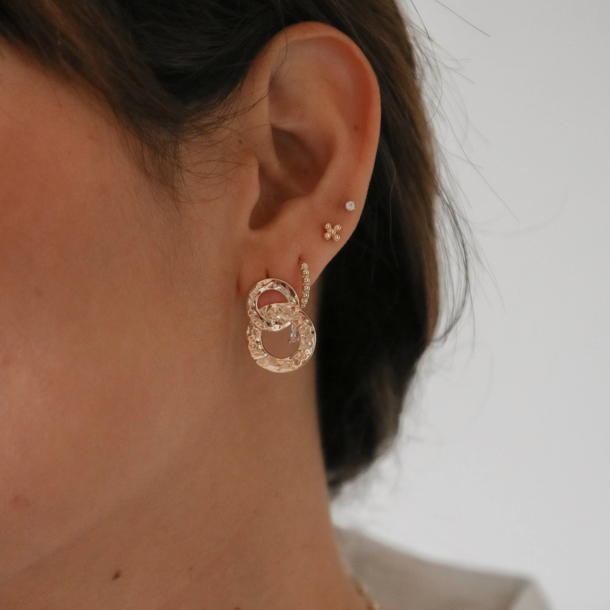 Los CONTA GOLDEN son pendientes chapados en 3 micras de oro de 18 quilates y poseen un efecto rugoso que aporta un toque único y moderno. Estos pendientes ofrecen durabilidad y elegancia, perfectos para lucir con un look sofisticado.