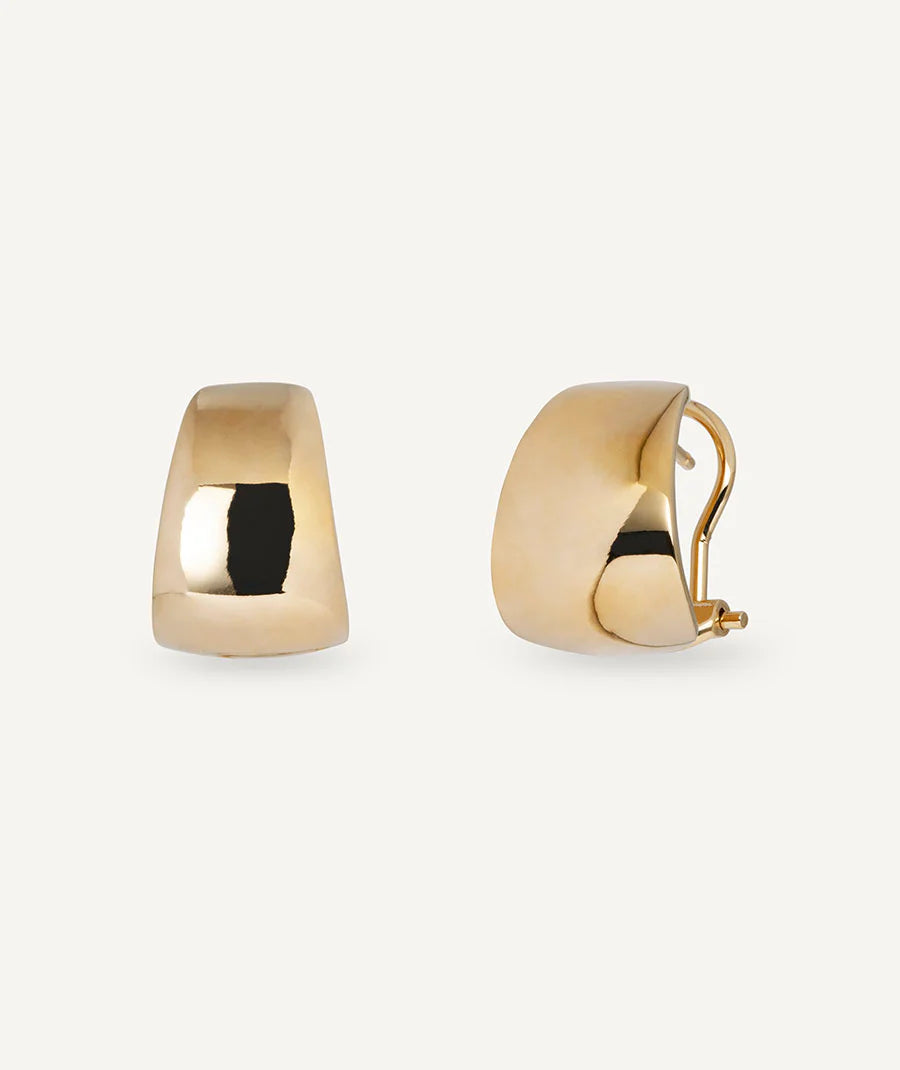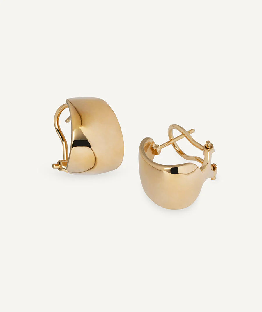 Pendientes semiluna ancho Desiré bañados con una gruesa capa de oro macizo de 18 kt, lo que garantiza una mayor durabilidad. Tienen una medida de 16 mm y un cierre a omega. Pertenecen a la colección Esenciales, una selección de pendientes fáciles de llevar y perfectos para el día a día. Ideales para completar cualquier look con elegancia y naturalidad. En la vuelta a la rutina, las joyas adecuadas nos recuerdan que lo cotidiano también puede brillar.